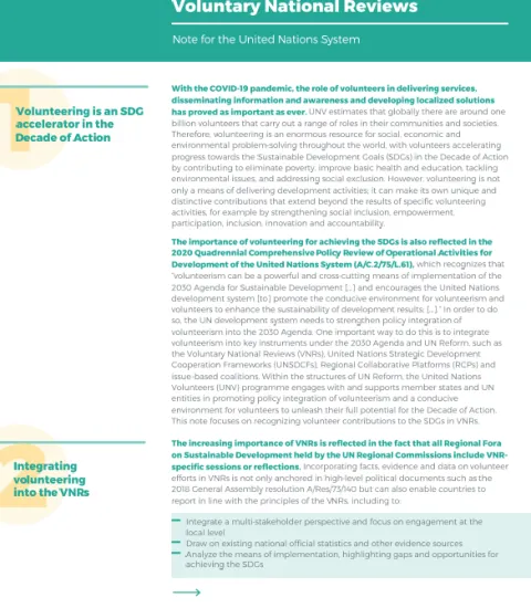 Reflecting Volunteer Contributions to the SDGs in Voluntary National Reviews - Note for UN System