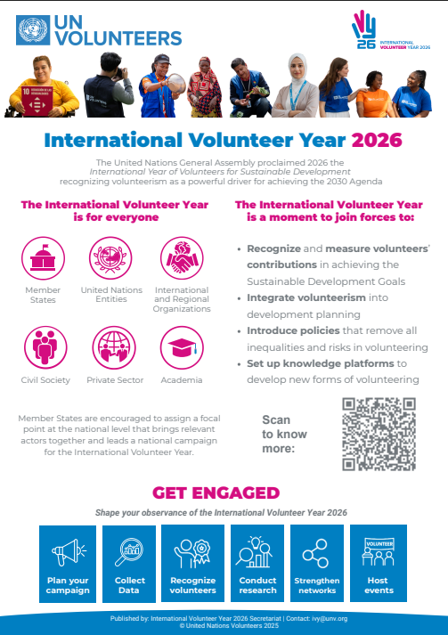 Every day, millions of people around the world take action – big and small – to make life better for others and for their communities. Whether it’s mentoring youth, supporting local health efforts, or responding to emergencies, volunteers drive meaningful change in communities. Through their actions, volunteerism becomes a force for achieving the Sustainable Development Goals - connecting people, strengthening resilience, and creating lasting impact.